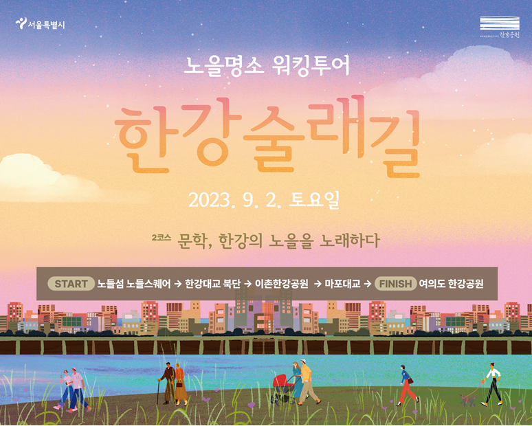 '한강술래길' 워킹투어의 운영개요와 함께 참가 원하시는 분들은 2023년 8월 17일부터 8월 22일까지 아래의 신청서 접수를 통하여 신청해 주시기 바랍니다!