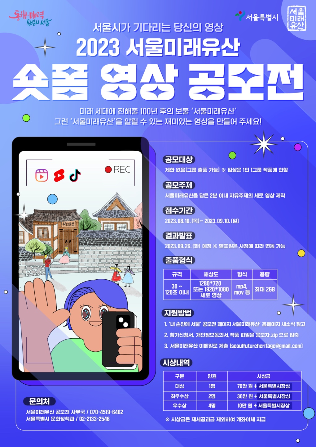 서울시가 2023 서울미래유산 숏폼 영상 공모전을 통해 당신의 영상을 기다립니다.